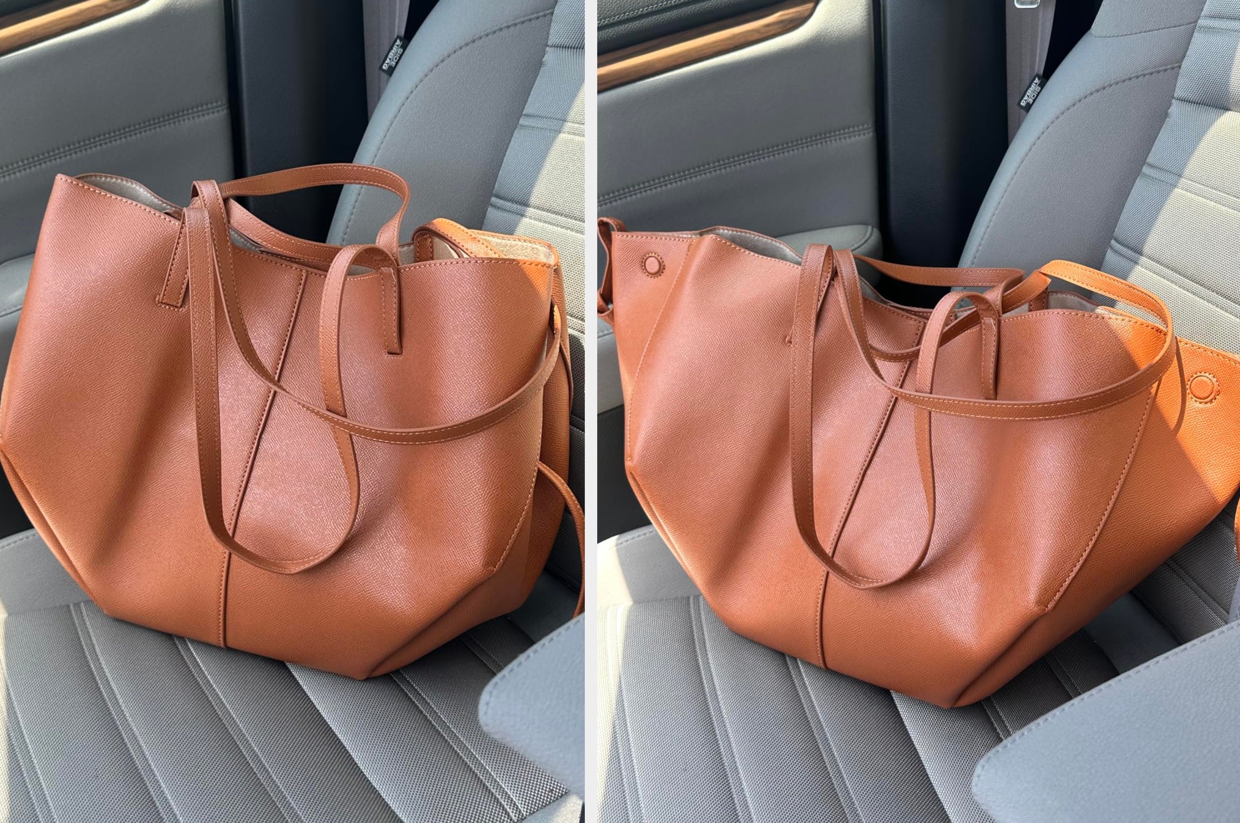 Promising review: "Iâve had this bag for months now and use it everyday. I wanted a grown up bag for my office job that could carry my iPad without looking like a bulky book bag. The material is thick with nice grain texture. Color has not faded, no cracking on the folds and the inside has a nice suede texture. I eventually cut off the smaller handles because they got in the way. The wallet inside is nice and roomy and detaches from the handles. I can fit my 10-inch iPad. I saw comments on the magnets being weak, but havenât had that issues. Since there are no internal pockets, this is a very spacious open bag. Even with an added pen pouch it still has room for my phone, an Apple, even a water bottle. A good buy overall and would repurchase if it ever falls apart (which I donât see happening soon)" âAmazon Customer